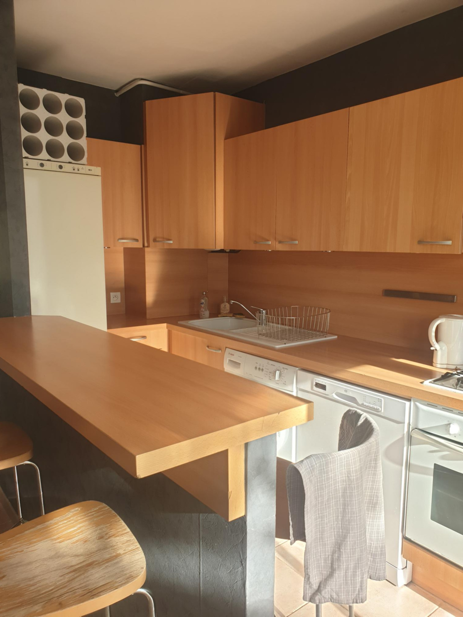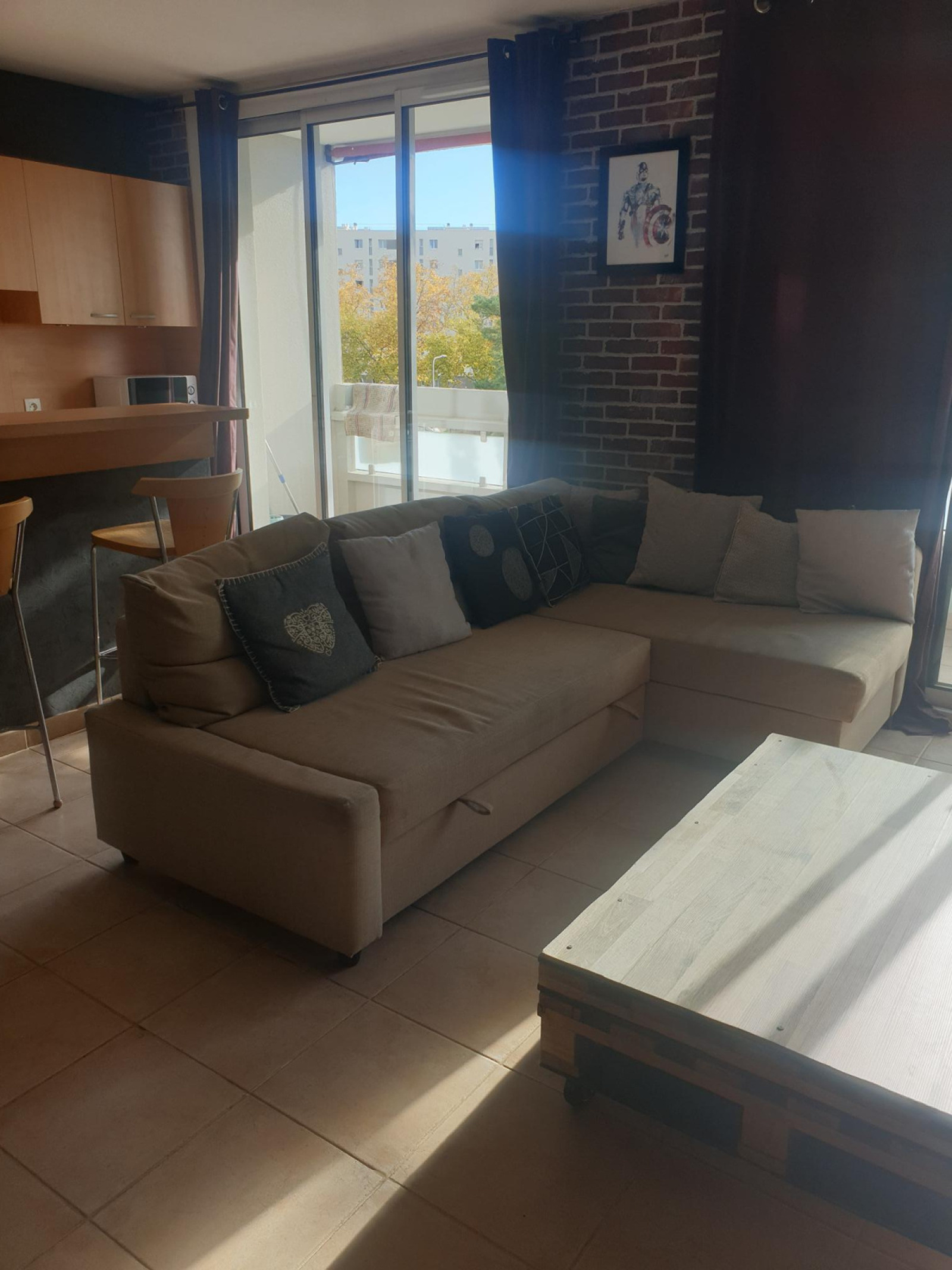 LE LOGEMENT COMPREND UN HALL D'ENTREE AVEC PLACARD AMENAGE - UN SEJOUR AVEC CUISINE OUVERTE MEUBLEE ET EQUIPEE (four, plaque gaz, hotte, lave-vaisselle, lave-linge, frigo/congélateur, micro-ondes) DONNANT SUR UN BALCON - UNE CHAMBRE AVEC UN CLIC-CLAC, UNE ARMOIRE ET UN BUREAU - UNE CHAMBRE AVEC UN LIT 140 CM ET UNE ARMOIRE.
