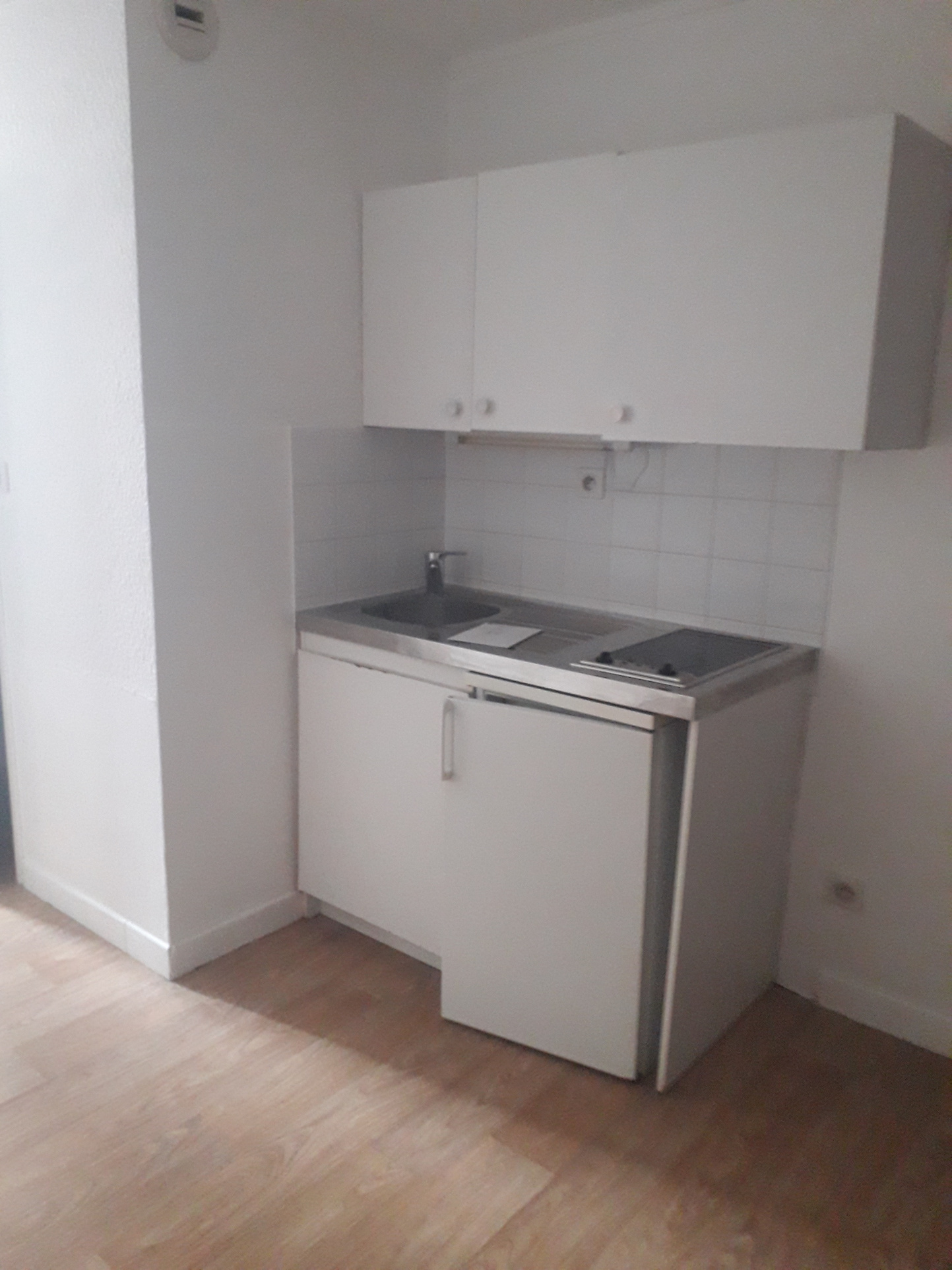 Vous trouverez 1 piece principale avec un coin cuisine meublé et équipée d'une plaque de cuisson 2 feux et un frigo top, une salle d 'eau avec wc.