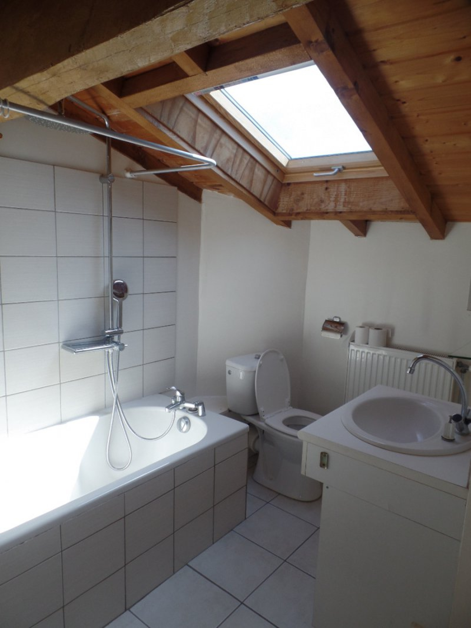 Au 2eme étage, deux chambres et une salle de bains avec WC. Chauffage individuel au gaz