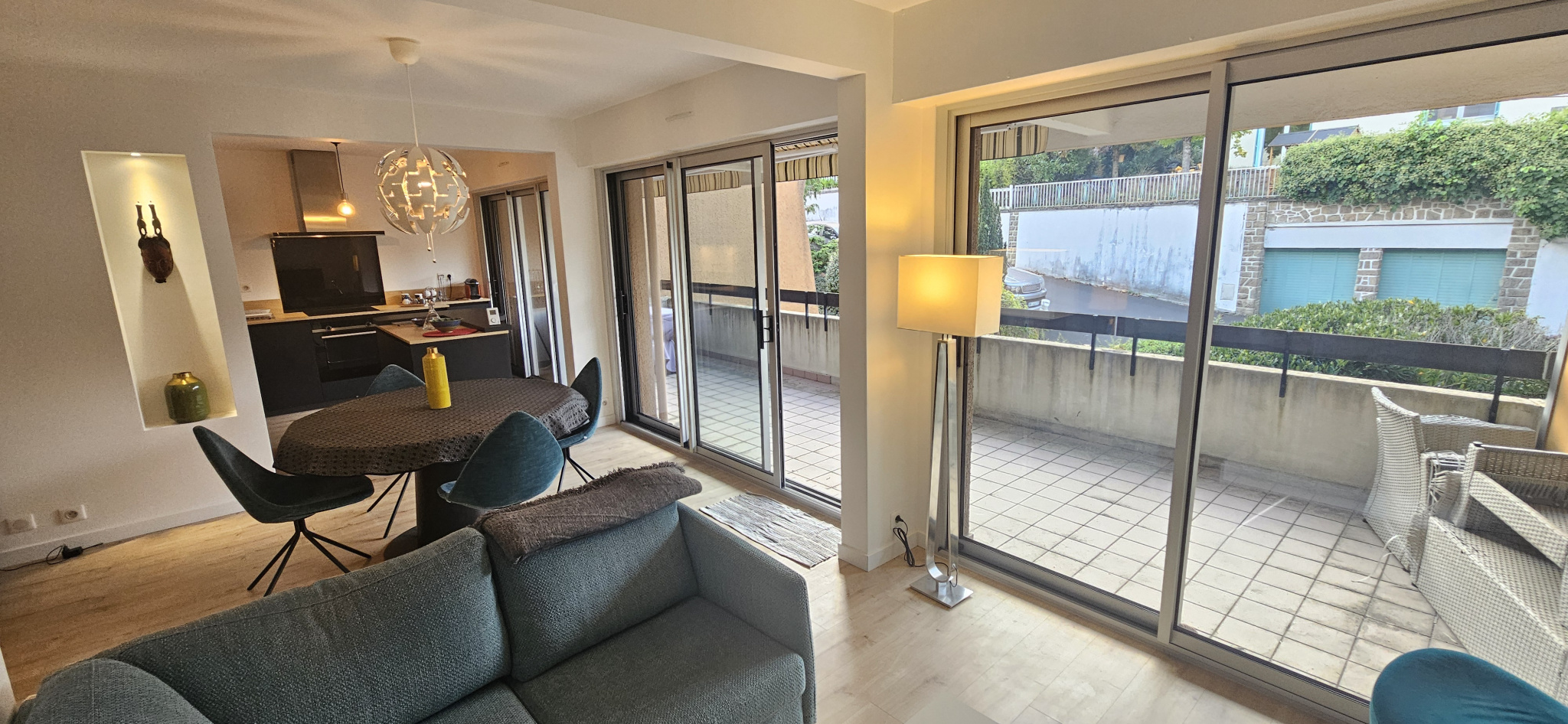 Chamalières (63400)A deux pas du centre de CHAMALIERES , dans une résidence de standing, appartement de type T3 , traversant, contemporain de 64 m² habitable entièrement rénové il y a peu avec qualité et gout. Vous aurez le plaisir d'ocuuper un bel espace de vie composé d'une grande pièce principale de plus de 30 m² avec cuisine entièrerment aménagée , espace repas et salon ouvrant tous les trois par de larges baies vitrées coulissantes sur l'exterieur, sans bruit, ainsi que de deux chambres. La terrasse sera une véritable pièce supplémentaire pour les beaux jours. Les plus de cet appartement : rénovation soignée , calme; fonctionalité ( plusieurs penderies) ascenseur, garage individuel et grande cave. Renseignements et visites sur rendez vous.