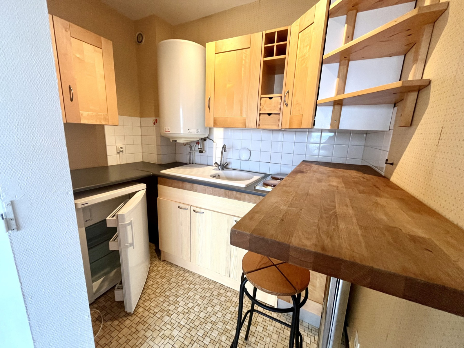 Clermont-Ferrand (63000)A deux pas de l'eglise de SAINT JACQUES , proche d'un arret de tramway , des facultés de medecine et de paharmacie , du complexe universitaire des des CEZEAUX des ecoles d'infirmières et sage femmes, mais aussi des commerces et du centre ville, joli t2 traversant avec terrasse au denrier étage comprenant un séjour avec cuisine ouverte, une chambre indépendante , uneplace de parking dans la cour, et une cave. Actuellement loué 465€ +55€ de charges. Idéal pour un enfant futur étudiant ou un bel invesitssement pour se constituer un capital. Resneigements et visites sur RDV